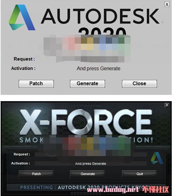 autodesk 2020全系列通用注册机,包含两款,虽然界面看起来简陋一点,但功能完美,可以完美激活autodesk 2020全系列软件先点一下左下角的“Patch”即可完成激活。